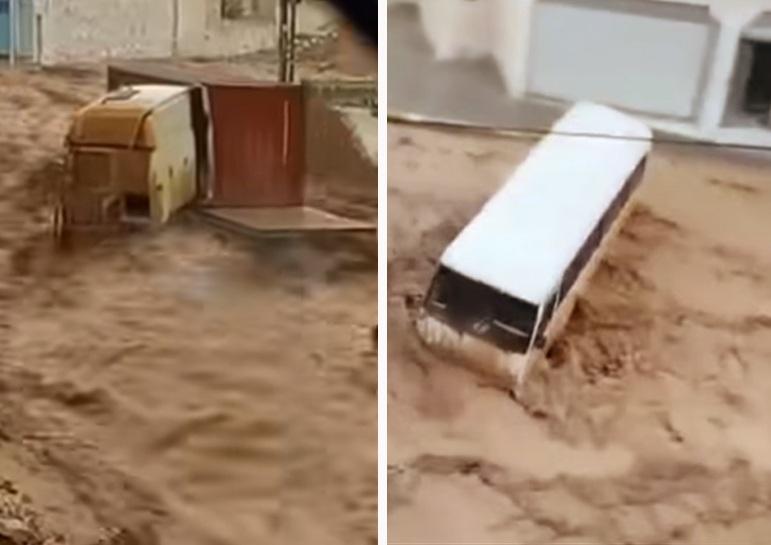 سيول الأمطار تجرف المركبات في الأردن.. بينها باص وشاحنة ضخمة!